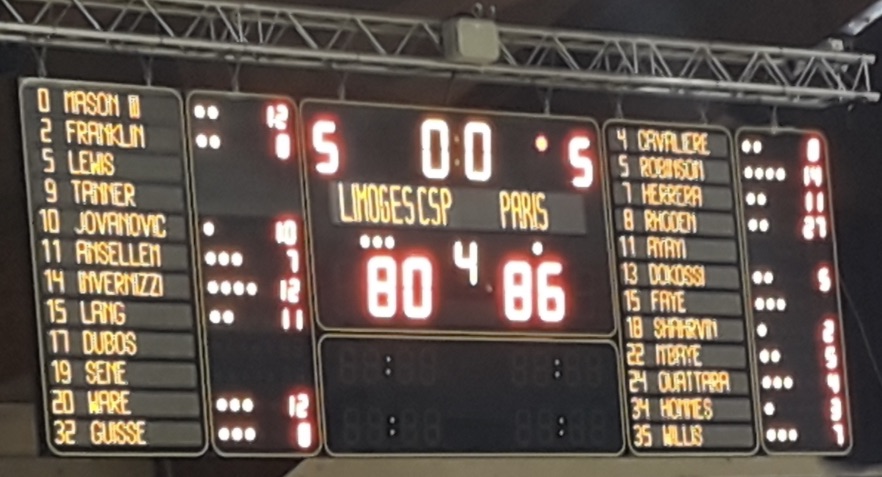 OUI mais, face à Paris, les maladresses —même petites— ne pardonnent pas. Il reste 40 secondes à jouer : Limoges 80 – Paris 81… Nos joueurs sont dans la raquette parisienne et peuvent reprendre l’avantage. Hélas, bêtement une nouvelle fois, la balle glisse des mains limougeaudes et Justin Robinson ajoute 3pts…84-80, « le rêve est passé ». Score final : 86-80, après un dernier panier parisien.